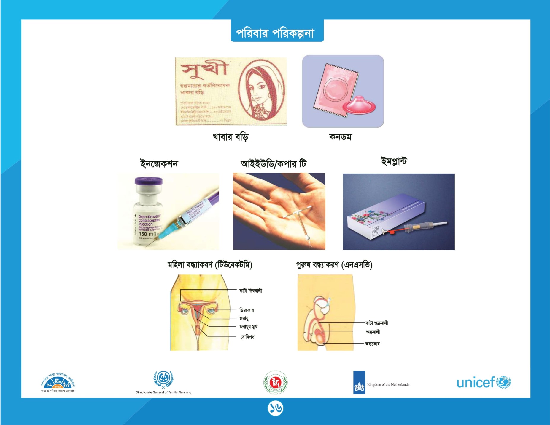 - দীর্ঘমেয়াদী পদ্ধতি- ইমপ্ল্যান্ট, আই ইউ ডি (নির্ধারিত কেন্দ্রে)